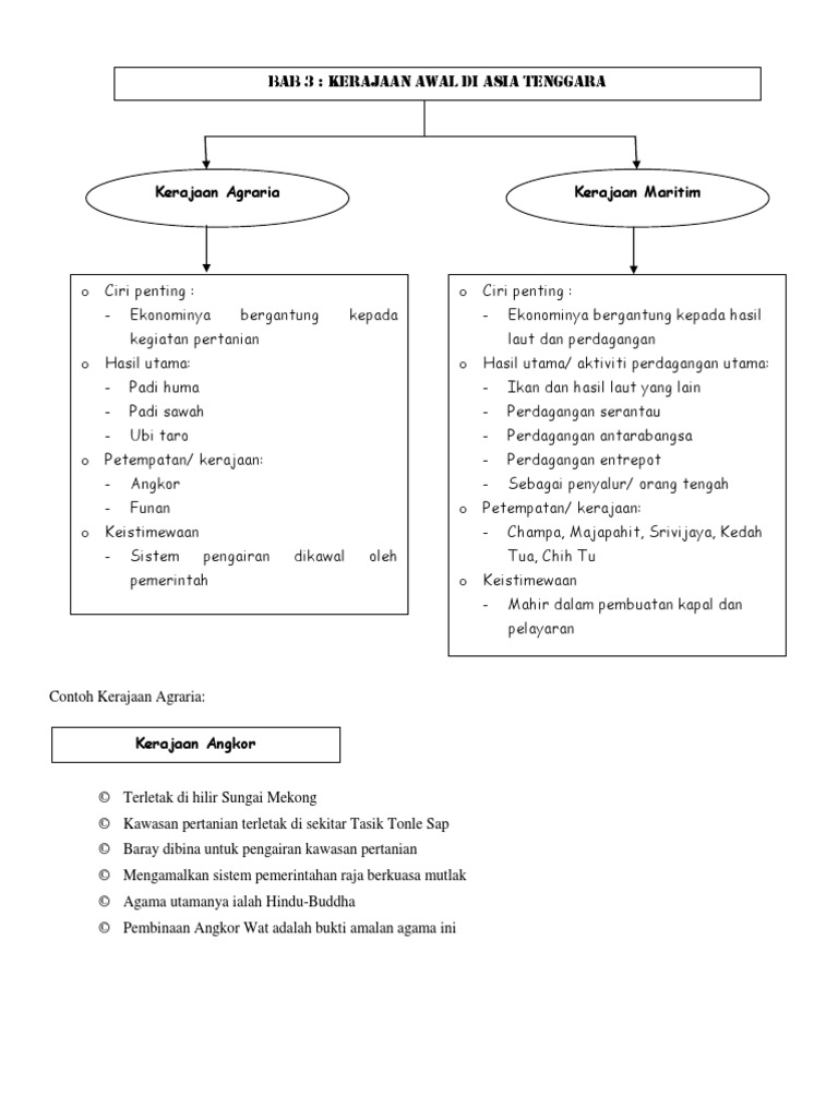 Kerajaan agraria (angkor & funan) kerajaan maritim (champa, chih tu, srivijaya, kedah tua & majapahit) 3.